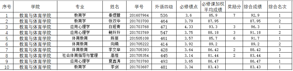 依据《关于做好推荐2021届优秀本科毕业生免试攻读硕士学位研究生工作的通知》以及《长江大学推荐优秀应届本科毕业生免试攻读硕士学位研究生管理办法(试行)》(长大校发 〔2020〕106号)、《教育部办公厅关于进一步做好高校学生参军入伍工作的通知》(教学厅〔2015〕3号)和《长江大学创新人才培育计划实施办法》(长大校发〔2019〕129号)等文件精神,学院组织开展了2021届优秀本科毕业生面试攻读硕士学位研究生推荐评议工作。参照学校的分配指标,结合我院各专业人数,8个普通优秀推免生推荐名额分配为:教育学2个,应用心理学1个,体育教育3个,社会体育指导与管理1个,另1个指标在体育教育和应用心理学两个专业之间产生,取综合成绩高者。2个“硕师计划”分配为:教育学1个,应用心理学1个。经对申请的22名同学资格审查、成绩评审,综合评议,推荐名单如下: