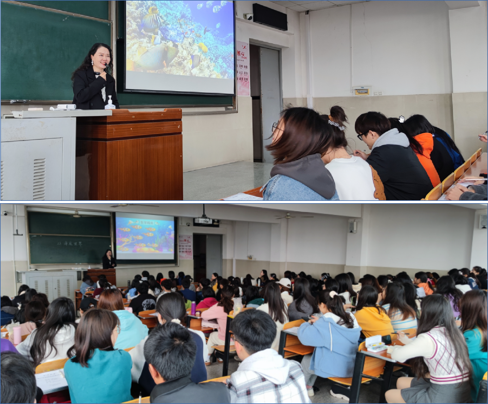 课程开始之前,薛老师首先向同学们介绍黄薇老师,同学们对黄老师的到来表示热烈的欢迎。黄老师以小学三年级语文课本中的《海底世界》为范例,带领大家一起学习。首先,黄老师引领同学们回顾生词与课文,同学们与黄老师积极互动。紧接着黄老师让同学们自由阅读,引导学生们分析理解课文。黄老师以学生为中心,在大家阅读学习的过程中,老师鼓励同学们思考自己喜欢的事物。接下来,黄老师与同学们相互合作,其中包括师生合作阅读以及小组合作讨论。在课堂接近尾声时,黄老师给大家播放海底世界视频,使课堂内容更加生动形象。最后,黄老师为大家介绍了讲课思路以及关键要点,并对同学们的问题一一回复,其中包括教师应用心教书,热爱自己的职业以及教师成长“做工、做匠、做师”的三个阶段。