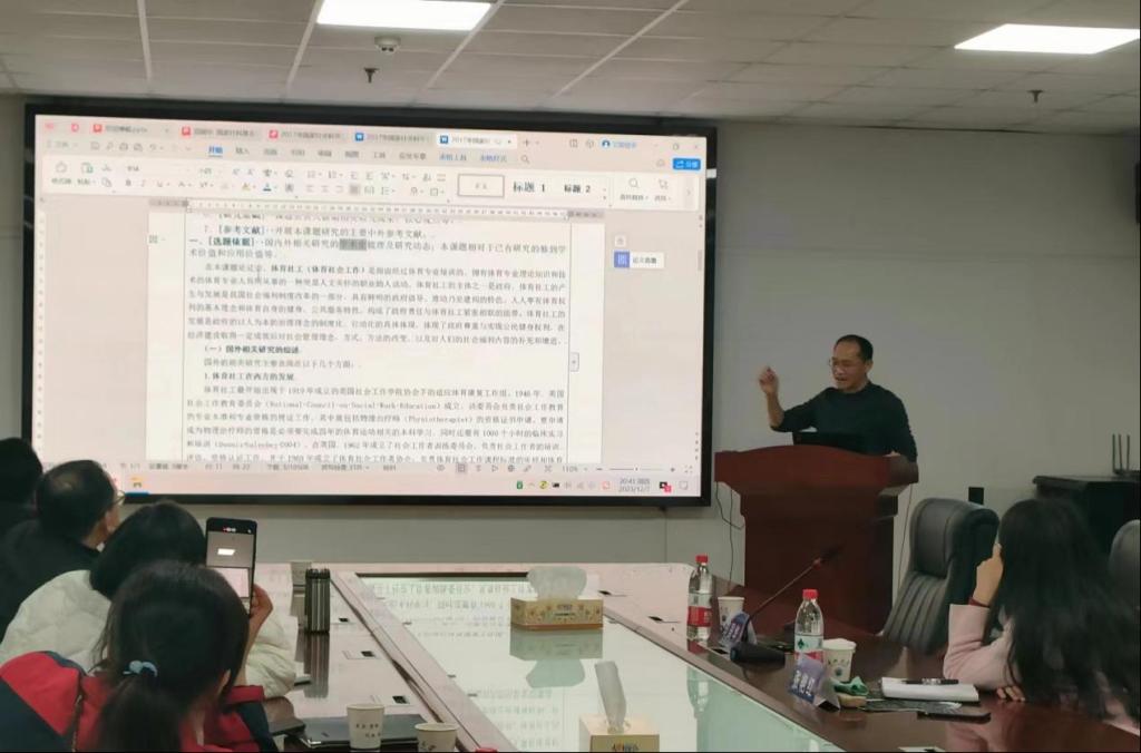 (通讯员:周久远)12月7日晚上19时,我院在文科大楼905举行了“长大20年”学术论坛暨长江教育与体育讲坛(2023年第9讲)。本次特邀上海体育大学郑国华教授作为主讲,讲座题目为《关于国家社科基金申报书撰写应该注意的诺干问题》。讲座由我院院长张艳红教授主持,我院青年骨干教师及体育类研究生共计30余人参加了本次活动。