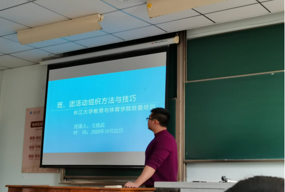培训伊始,辅导员文晓武老师对大家进行了新闻稿的培训,向大家讲述了新闻稿撰写中需要注意的几点。随后又讲述了班级活动组织与技巧,提到了事事责任到人的重要性,要完成好自己的任务,并且配合其他班委完成每一次活动,多组织班级活动,不仅能提高了班委的业务能力,也可以增加同学之间的感情,在组织活动时要多方面考虑问题。